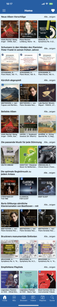 - „Home“-Bereich mit weiteren Carousel-Slidern mit thematischen Hörempfehlungen der NML-Redaktion